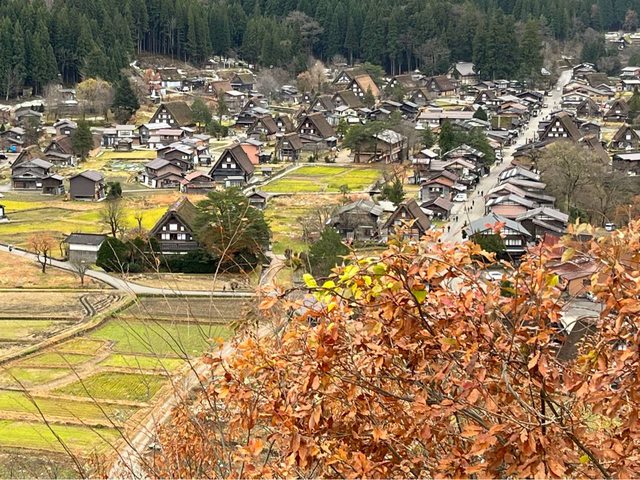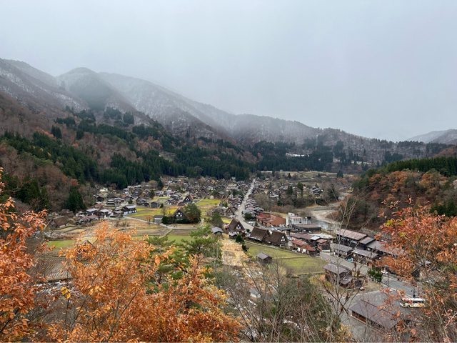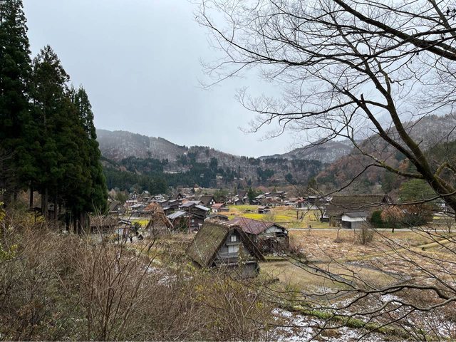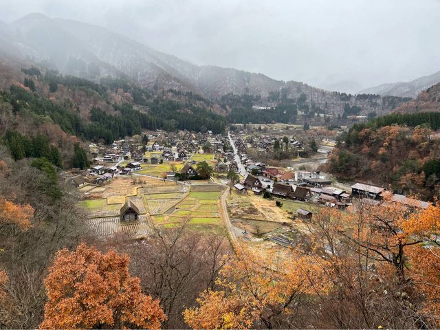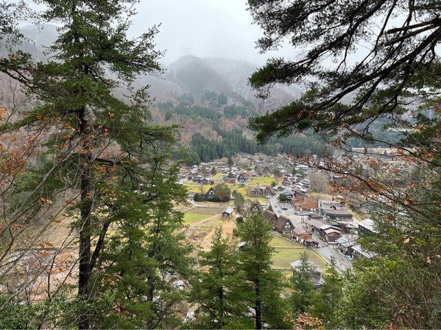 的場景,就真實地出現在眼前。約15-20分鐘到荻町城跡展望台,小小的合掌屋搭配略枯