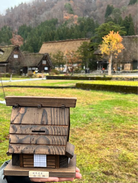 在另一家賣店買了合掌屋造型存錢筒(1,650円)。