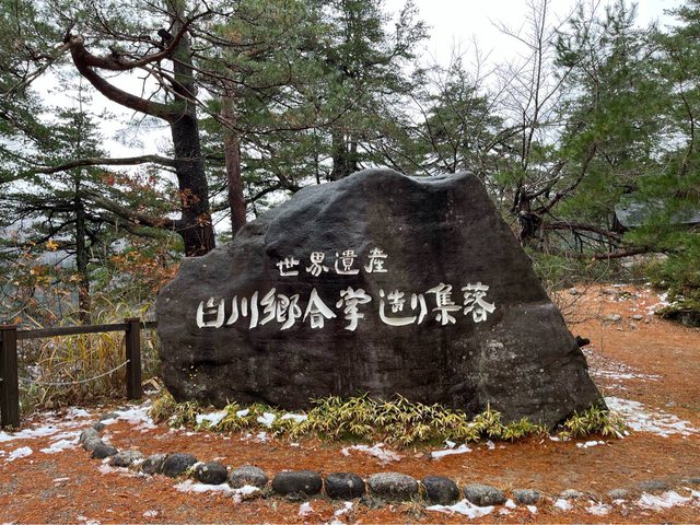 圍籬旁邊有條小徑,往下走可以看到有標示白川鄉的大石頭及另一個角度的鳥瞰景色。昨