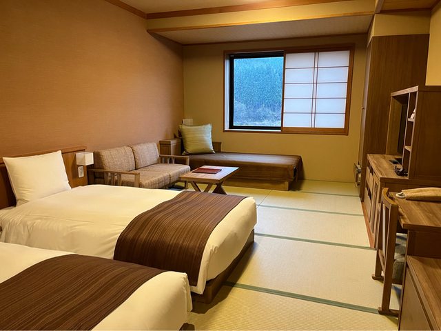 約5分鐘的車程抵達今晚下榻的飯店-御宿結の庄(官網,早期割45,37,300円),同樣屬