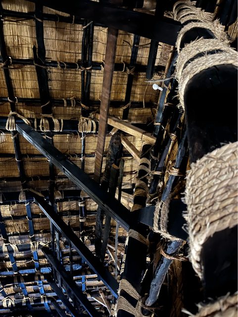 合掌屋是以木頭為主結構,以茅草作為屋頂材料,用麻及栃木編織而成的繩子來捆綁而完