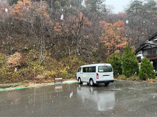 結束參觀行程,回巴士站等飯店的接駁車時,天空開始下起白色的冰霰/小雪。查了一下