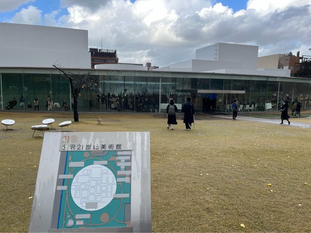 我們坐到金澤21世紀美術館下車。今天是週日,參觀的人潮很多,難怪是日本全國總入館