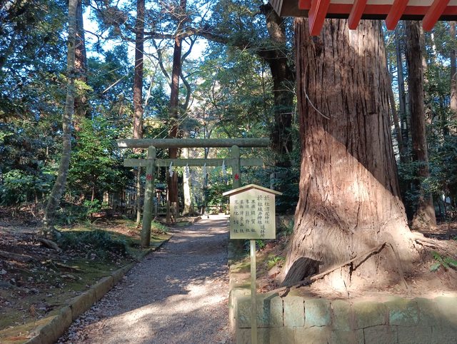 相較拝殿、本殿樸素許多,座落林中更顯神祕