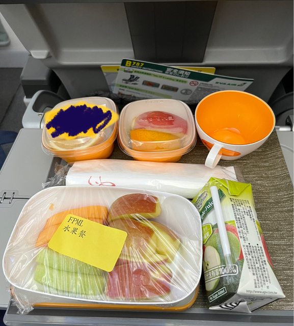 航班很早(長榮/福岡進出),預期自己沒胃口所以選水果餐,不知道是水果太涼還是我