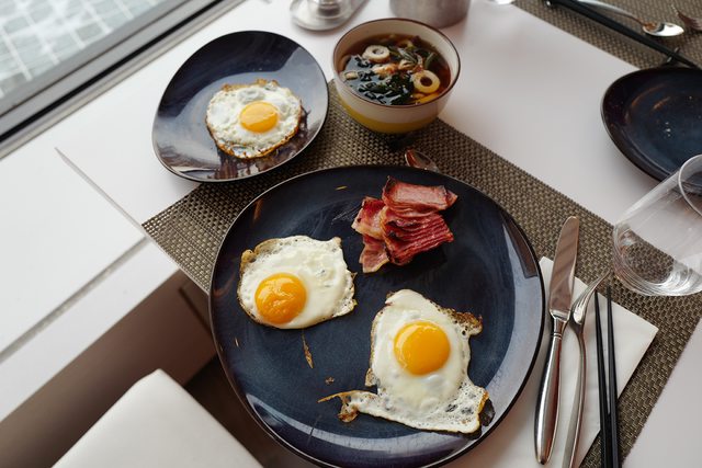 吃幾個蛋、培根,喝碗熱烏龍麵,補充一些蛋白質跟澱粉。
