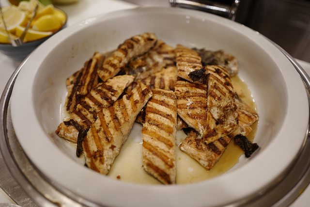 鮭魚排也是亂七八糟,又水又柴,我這料理白癡煎的都吊打……