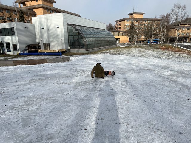 成功是成功,不過還是板子跟冰面硬尬,難以控制。