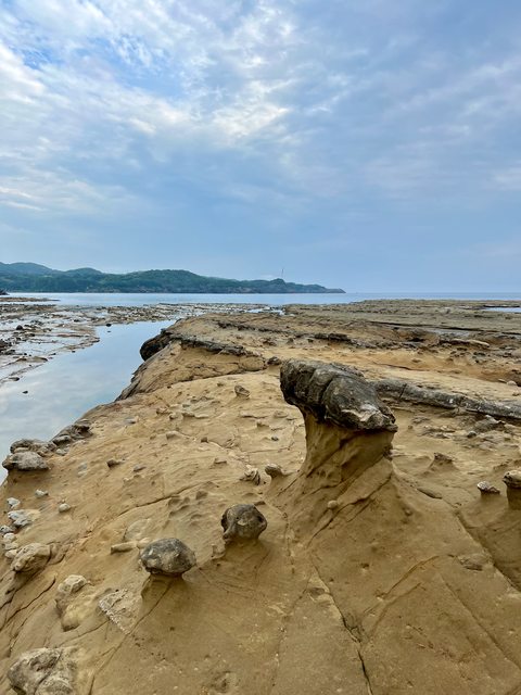 這個是不是很熟悉呢?「蕈狀岩」的成因就是砂岩與結核的差異侵蝕。這裡的蕈狀岩和野