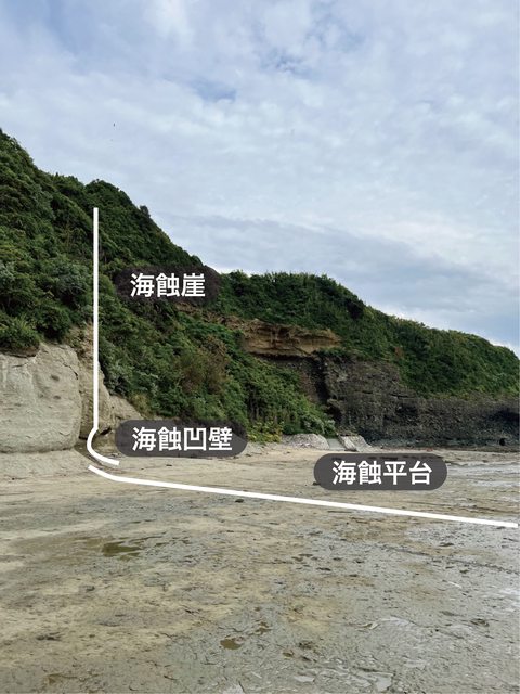 方,相對容易受海水侵蝕,形成「海蝕溝」。