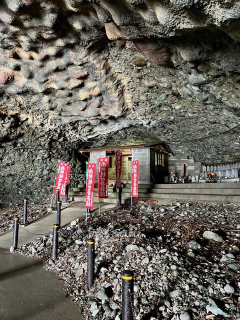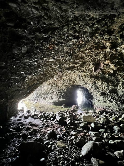 前、後兩段隧道之間,會進入海蝕洞「賽の河原洞窟」的內部。