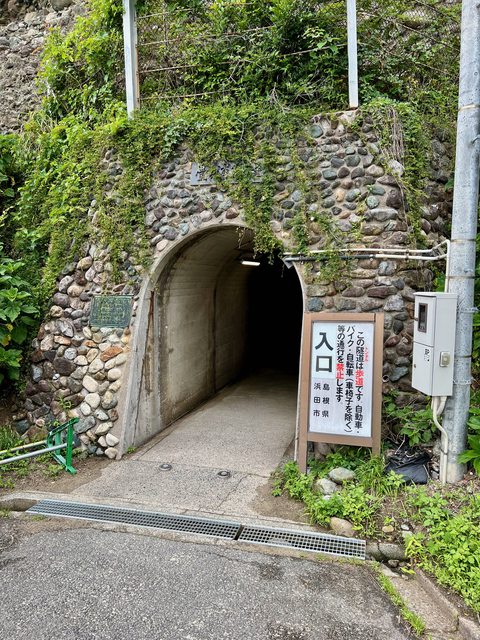 在鄉間小路的盡頭,有座低矮的隧道,就是石見疊浦的入口。勇敢地踏進去吧!