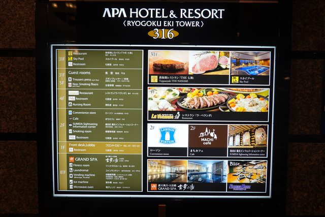 吃完就前往兩國站的飯店 APA Hotel & Resort Ryogoku Eki Tower 單人房平均一晚約1950台幣 當初選這間也是因為價位+樓下B1有溫泉大浴場 2樓有Lawson 2樓Lawson那層也有些跟相撲有關的造景 離上野 淺草 晴空塔都不遠 我房間窗外也可以看到晴空塔 只是視角上剛好有其他大樓檔到