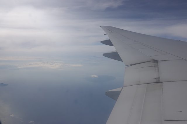 特地選左邊靠窗 不過雲層太厚 只能看到一點點的富士山 (回程則是24小時前忘記先選位 可惜了)