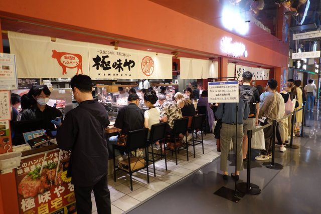 之後就邊排隊邊跟前面新北蘆洲來的一家三口聊了起來 他們說昨天才剛去迪士尼玩完 隔天就要回國了 排隊約45分鐘才入內用餐 內部約十個位置 因為店家也在JR高架化鐵路的沿線下 所以吃飯會不時聽到JR經過的震動聲