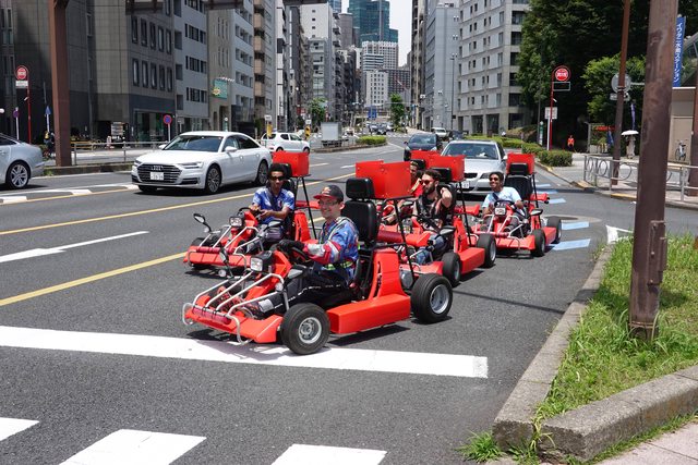 吃完就搭地鐵做到赤羽橋站 前往東京鐵塔 路口還剛好遇上卡丁車車隊