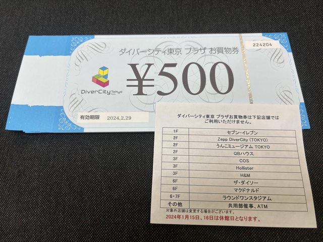台場DiverCity禮券,面額共日幣11000
