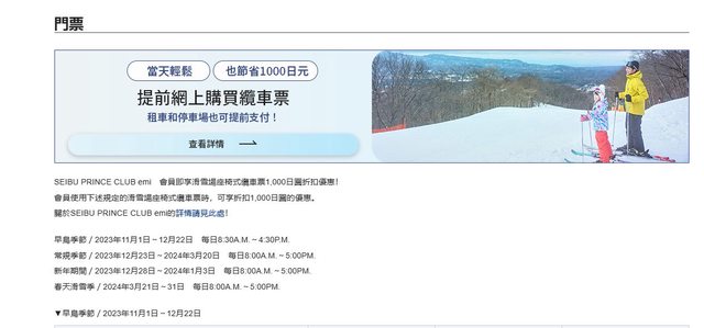 所以打算先在王子滑雪場的官網上預訂好裝備與門票
