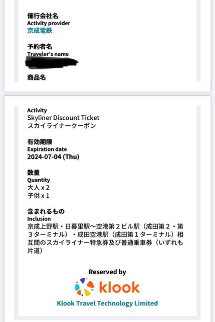 因為行程大改不需要搭京成去機場,但Klook不能退票,如果有需要請站內信