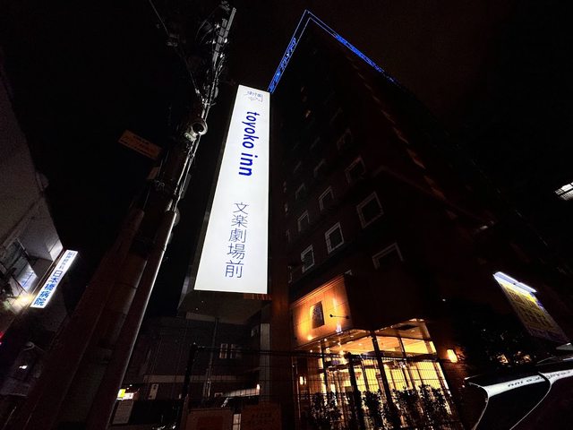 出站的時候天已黑,這次兩晚都住東橫INN大阪日本橋文樂劇場前。