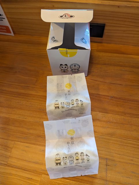 多啦A夢限定包裝,中間包求肥跟紅豆,很微妙的味道,70分。
