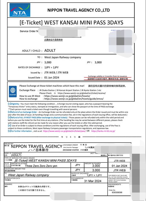 標題[讓售] JR關西迷你周遊券(三日)×2