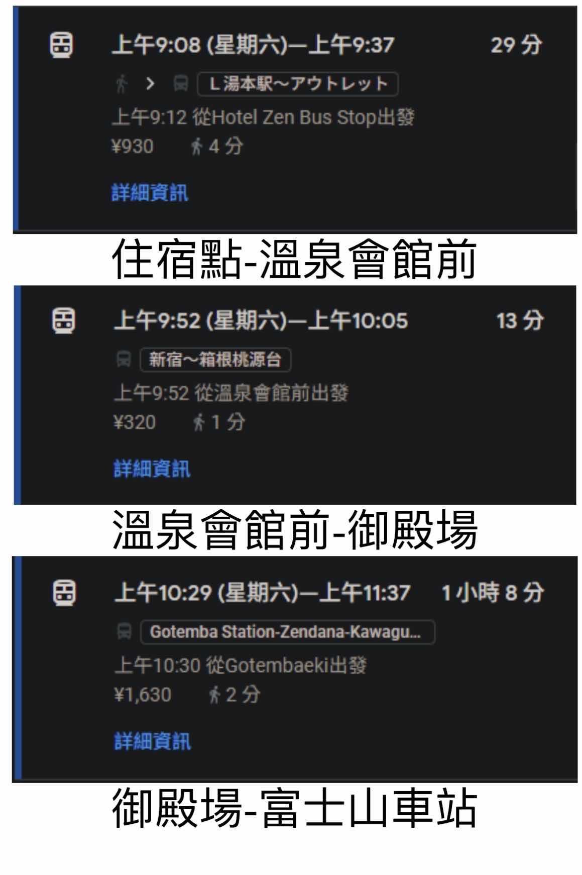 目前主要的問題卡在從箱根前往河口湖的方式和時間,不知道這樣會不會太趕,加上如果