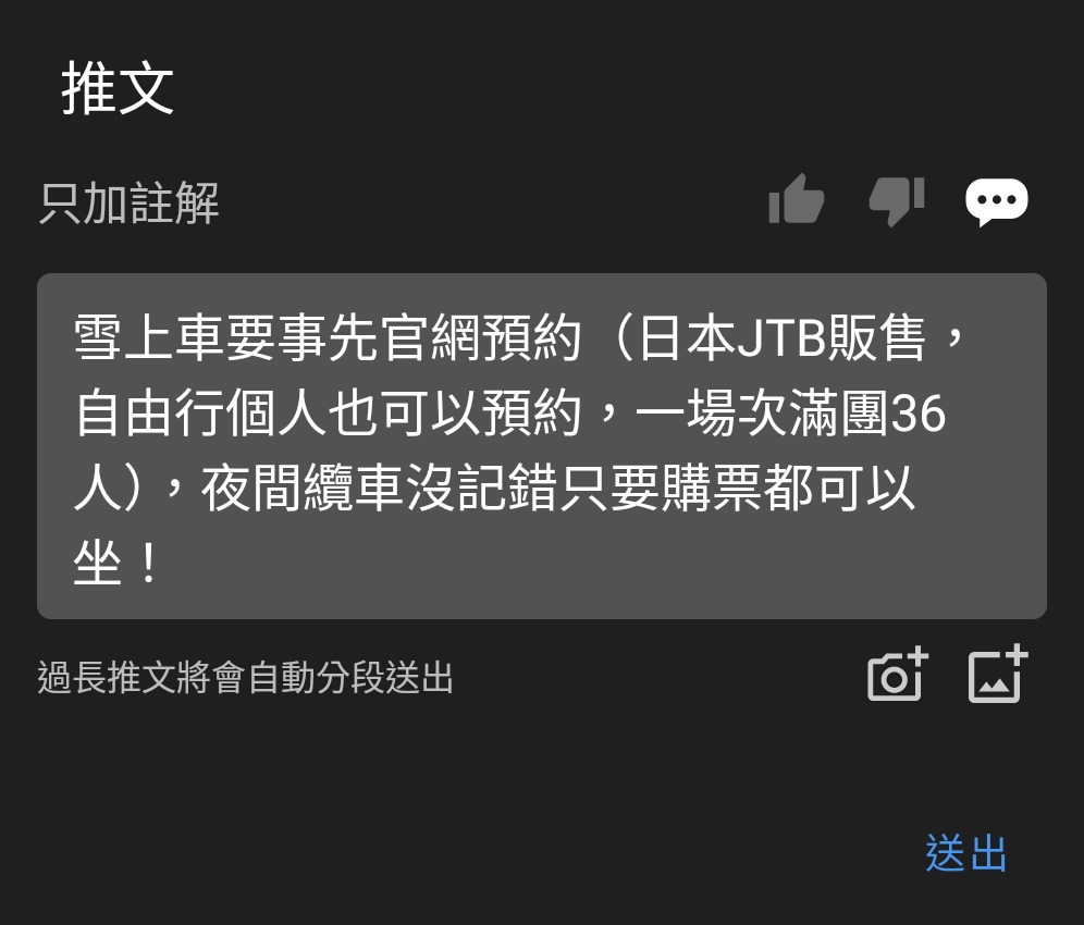 → mithralin : 等下,如果是單純纜車票的話應該是可以現場買 01/19 16:36