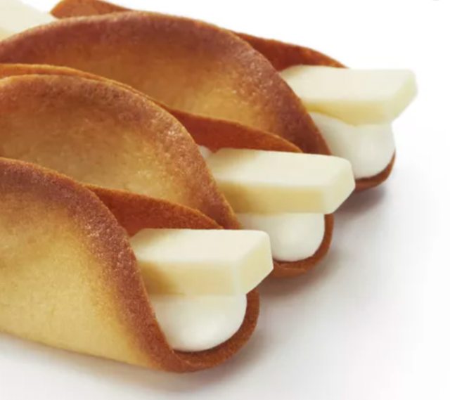 網路上說是焦糖口味,但我吃到的是咖啡,整個入口嚼就是孔雀咖啡捲心餅哈哈,因為漂亮