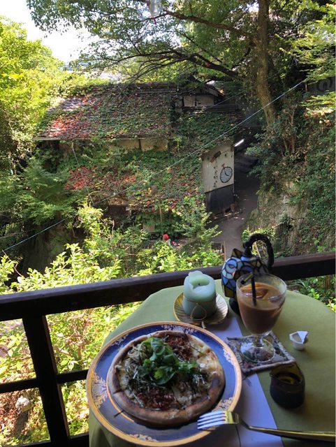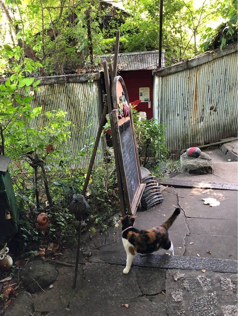回程選擇走貓之細道,正好路過簡餐店「梟の館」,抬頭看到老闆悠閒的坐在露台上抽菸