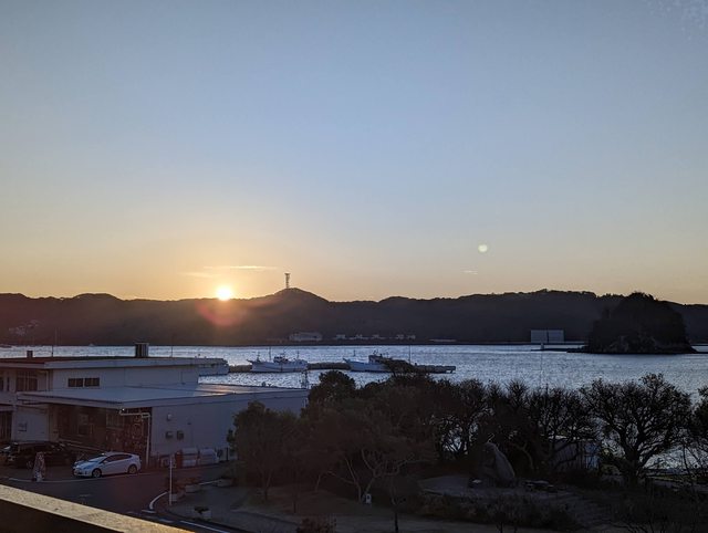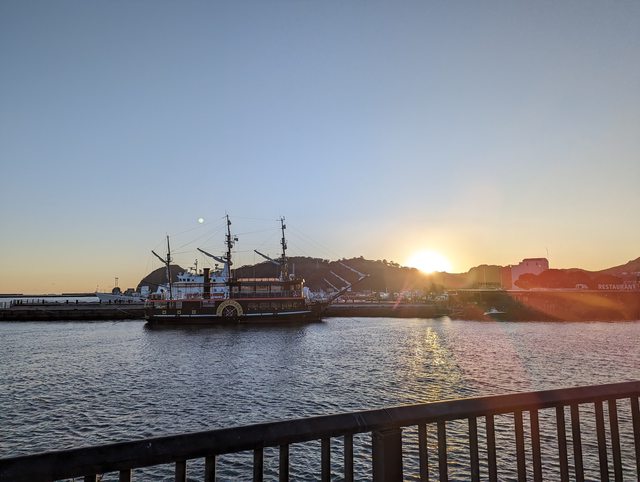 隔天早上看著下田灣的日出醒來,再去泡一次晨湯後吃早餐(同樣是和式自助餐)