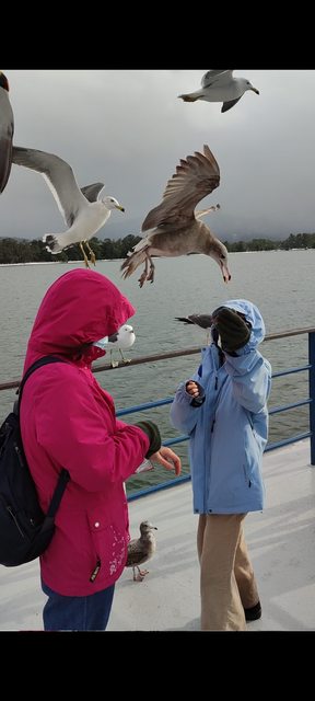 接著搭遊覽船餵可愛的海鷗,每一隻都嗷嗷待哺,因為遊客又是只有我們一家四口XD