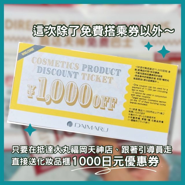 半年前曾限時推出從福岡機場到大丸福岡天神店(近天神地下街)免費接駁車,今年再次