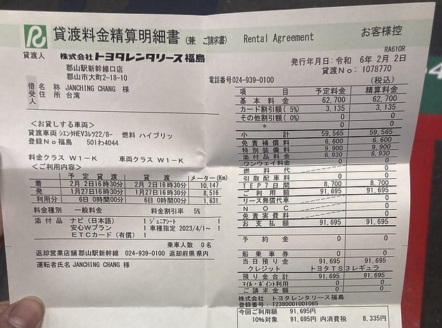 北地區租車,郡山是蠻方便的一個點,當天在15:30就到達開始辦租車手續。