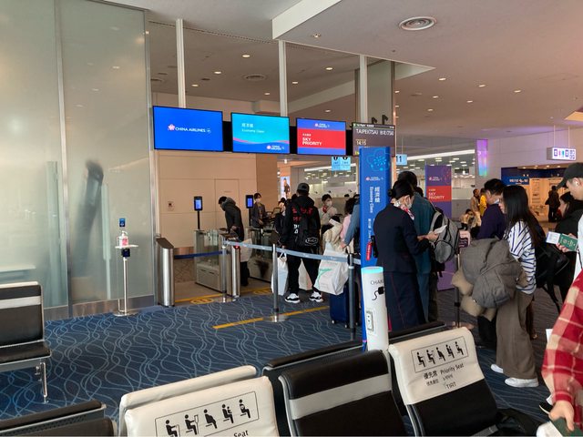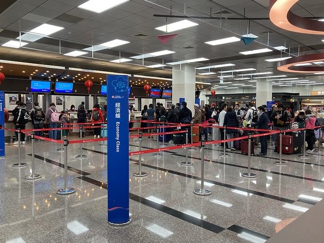 松山機場華航報到櫃台06:40開櫃,沒有網路報到的區域沒人排隊,有網路預約報到掛行