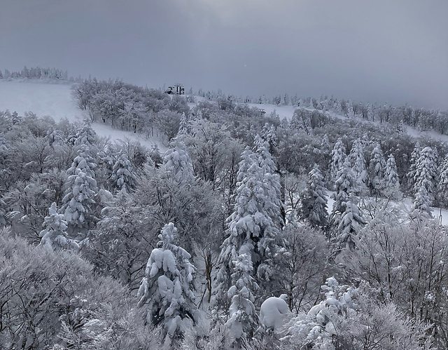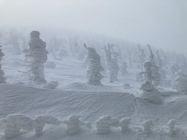 甲田樹冰風大到在清場,阿仁樹冰的森吉山纜車直接停開。
