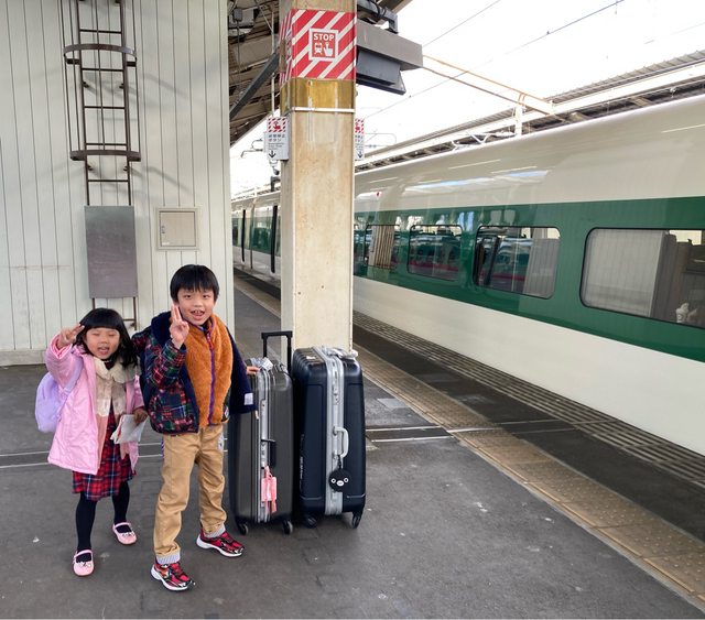 面,新幹線出發拉車就只須拉兩咖28吋行李箱加1咖登機箱。