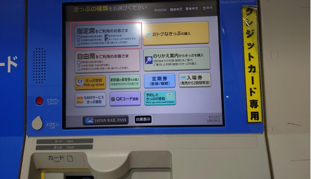 如果指定席券売機允許直接插PASS,會直接跳到畫面