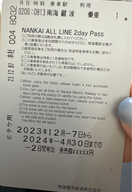 標題[讓售] 南海電鐵 2日券(剩一日)