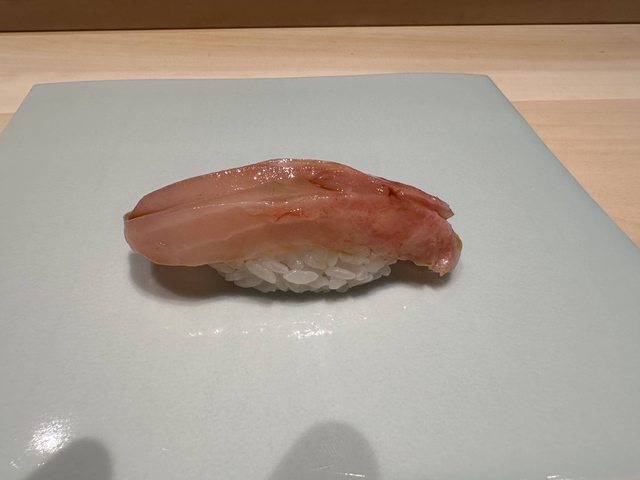 再來是金目鯛 我問副廚說他們的魚料似乎都切比較厚,副廚說這是主廚的偏好。
