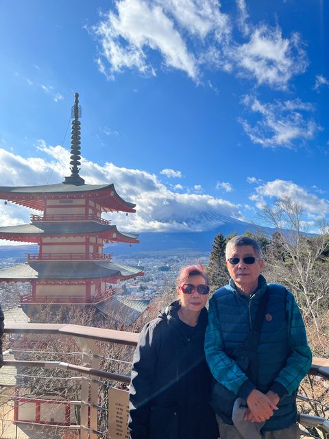 第一站到新倉富士淺間神社,想拍經典的忠靈塔與富士山,無奈爬得氣喘呼呼後,雲層不