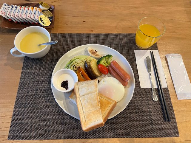 早餐有溫泉蛋也有現做歐姆蛋
