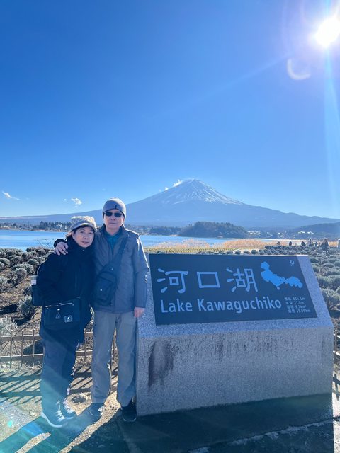 不得不說日子真是挑的剛剛好,還沒到河口湖,富士山就露臉了