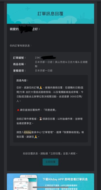推 chrissuen : 其實KKDay的角色是不時就中介,要不要退費還是要看 02/16 19:46