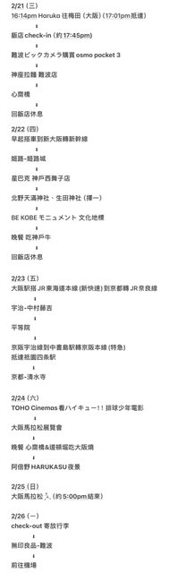 標題[問題] 2/21-2/26大阪馬拉松之旅行程請益
