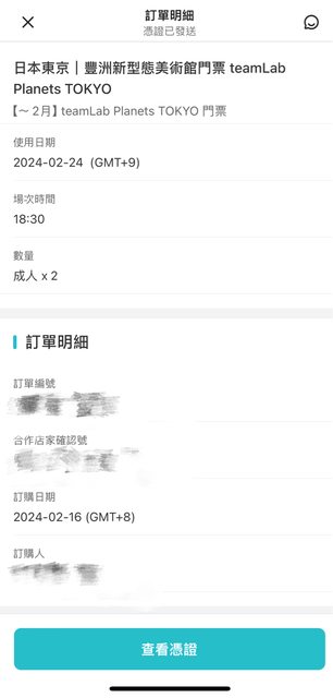 KKday東京豐洲teamLab Planets Tokyo有兩張