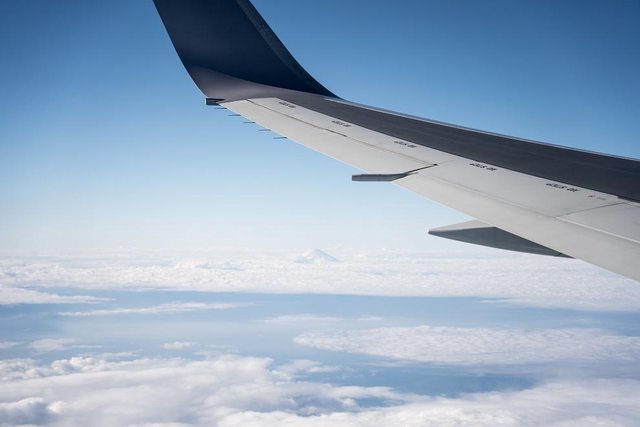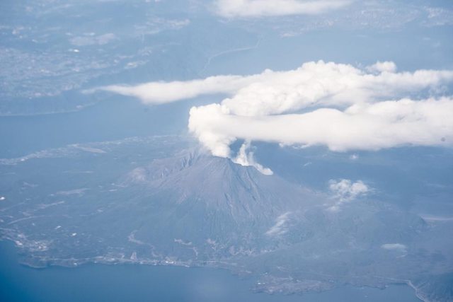 經過富士山時機上有廣播左側可看到富士山 可是還是有點遠