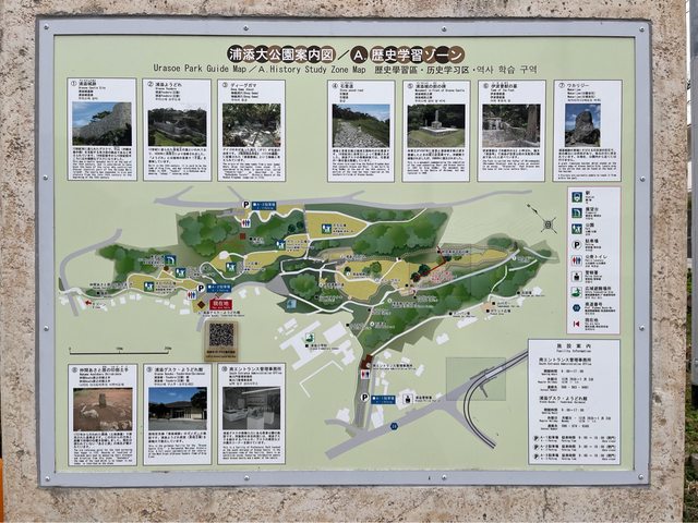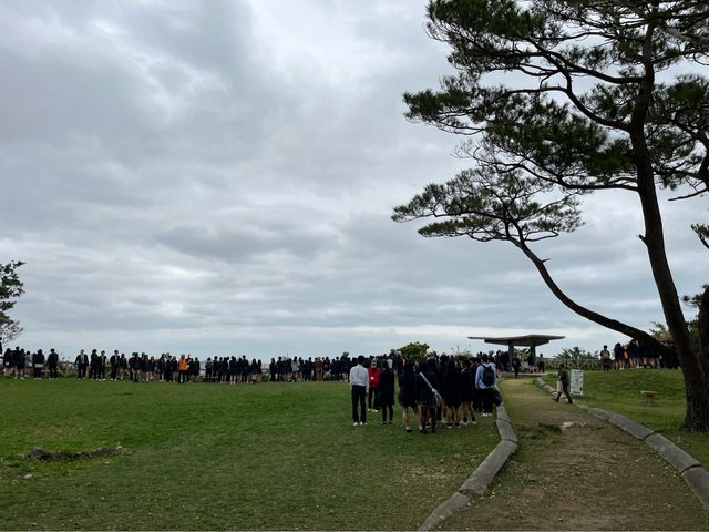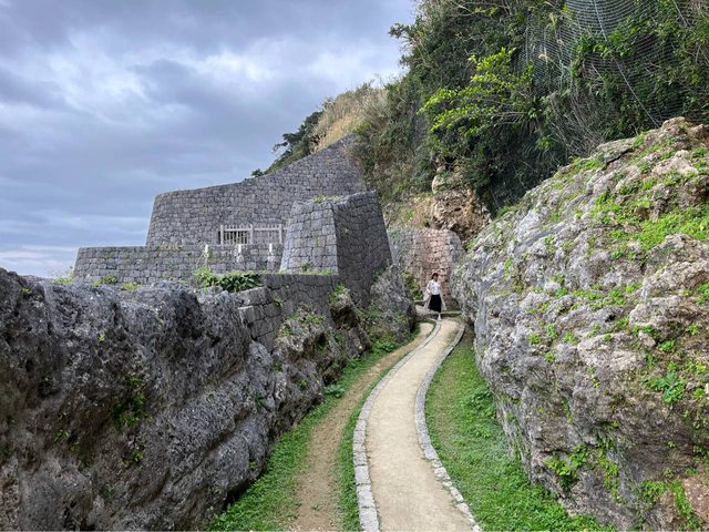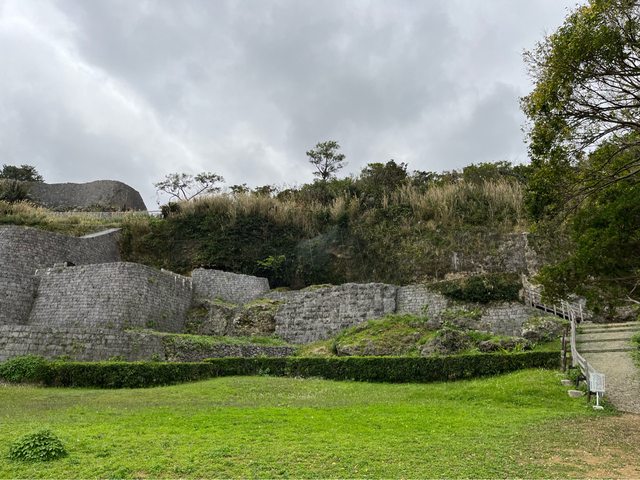 這時發現山壁邊有城牆,原來是浦添城遺跡,上去後可以遠眺市區及海邊。今天還有學生