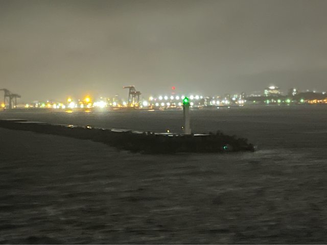 今天晚上8點啟程,在引水人的引領下、慢慢離開那霸港,要再回石垣島了(其他有的航