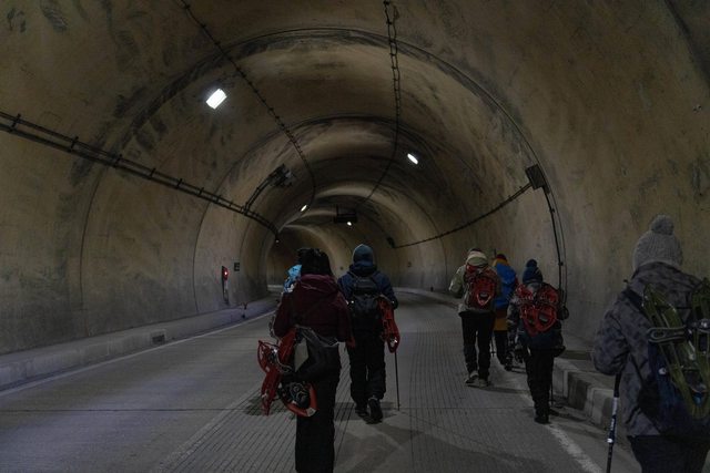溫泉的上高地隧道口。在入口處嚮導先是介紹了一下這次的健行路線以及沿路須注意的事